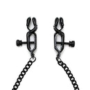 Pinças de mamilo ajustáveis com corrente na cor preta.