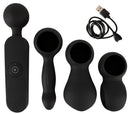 Vibrador de varinha de massagem recarregável com 3 acessórios da Coup!es Choice com cabeça de massagem flexível e com forte vibração. O design ergonômico com cabo longo atinge facilmente todas as partes do corpo e pontos externos de prazer para mimá-los com vibrações e massagens. Estão incluídos 3 acessórios diferentes para massagens íntimas: um masturbador de protuberância aberto e outro fechado, bem como um vibrador com estrutura estimulante. Os acessórios macios e sedosos são fáceis de colocar e podem ser substituídos rapidamente.