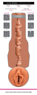 A manga interna feita de material super macio semelhante à pele tem o autógrafo de Eliza próximo à abertura e pode ser facilmente removida do masturbador para limpeza.