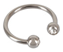Anel aberto de aço inoxidável com 2 bolas de joalharia, adequado para pênis circuncidado e não circuncidado. O anel estreito é usado diretamente na coroa de bolota.
